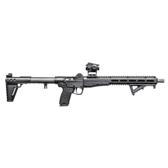 The SUB2000 GLK 10mm is a folding semi-automatic carbine chambered in 10mm Auto and compatible with Glock 20 magazines. The Gen 3 platform adds a rotating forend allowing it to fold with optics mounted. It features a 16.15” barrel blowback action M-LOK handguard threaded barrel and adjustable sights.